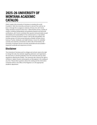 • 2025-2026 Course Catalog by University of Montana--Missoula. Office of the Registrar